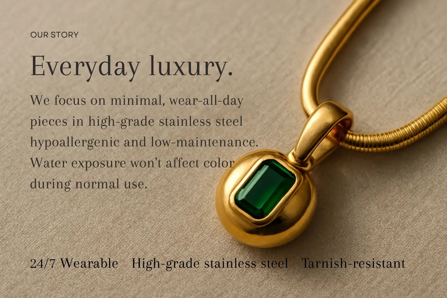 * Built for daily wear: waterproof, tarnish-resistant, and skin-safe across our core High-Grade Stainless Steel collection.